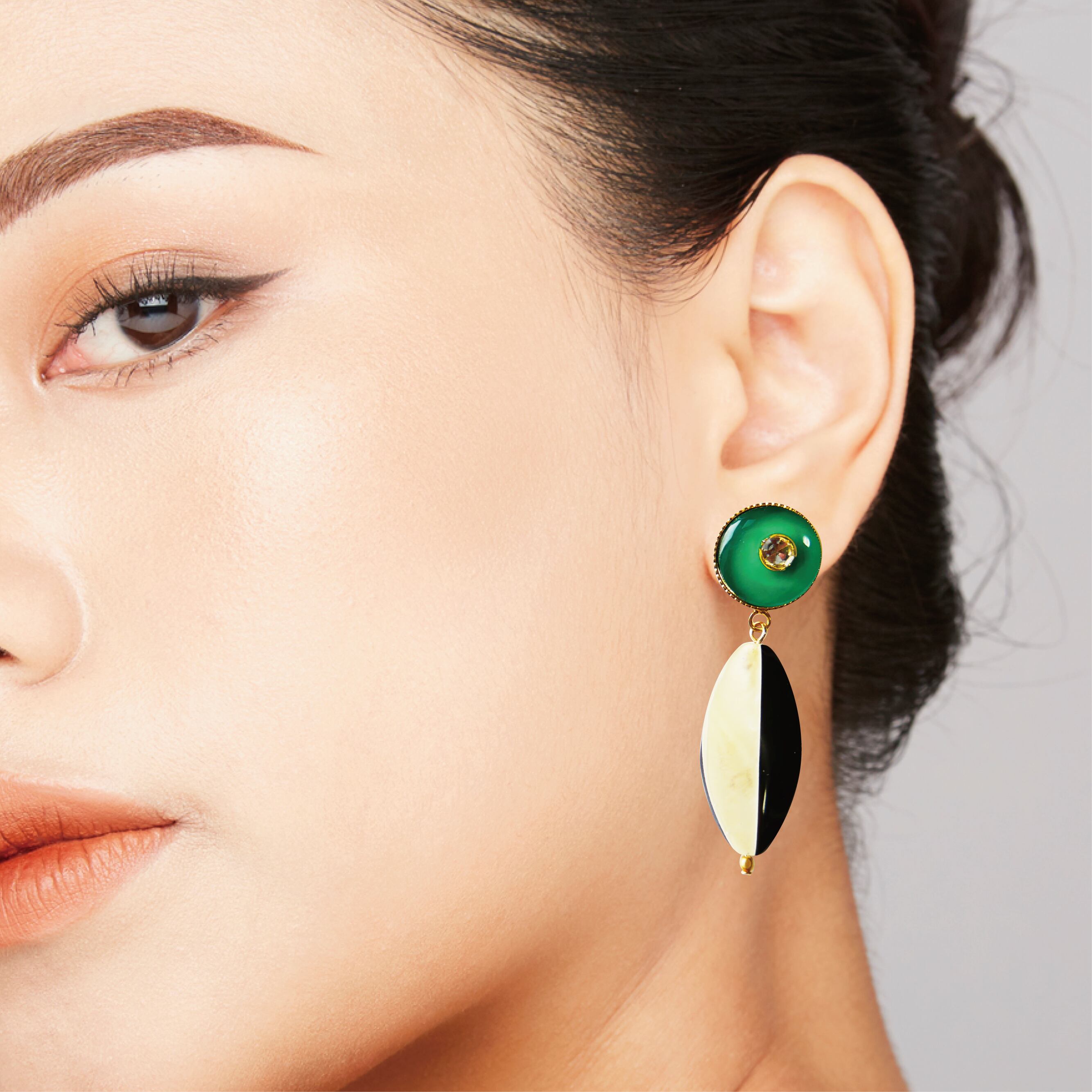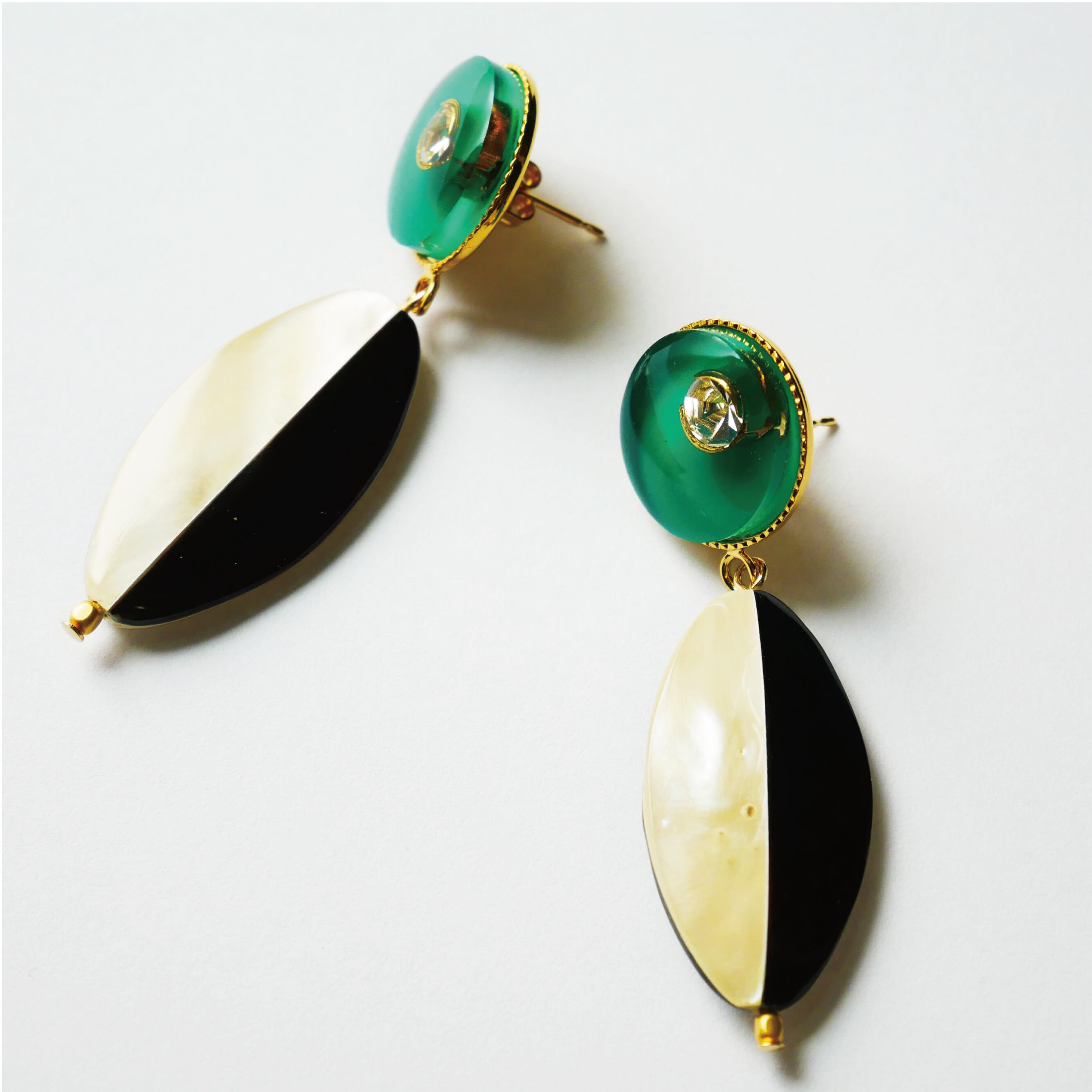 #001 ビビッドグリーンのツートーンカラーシェルピアス/イヤリング