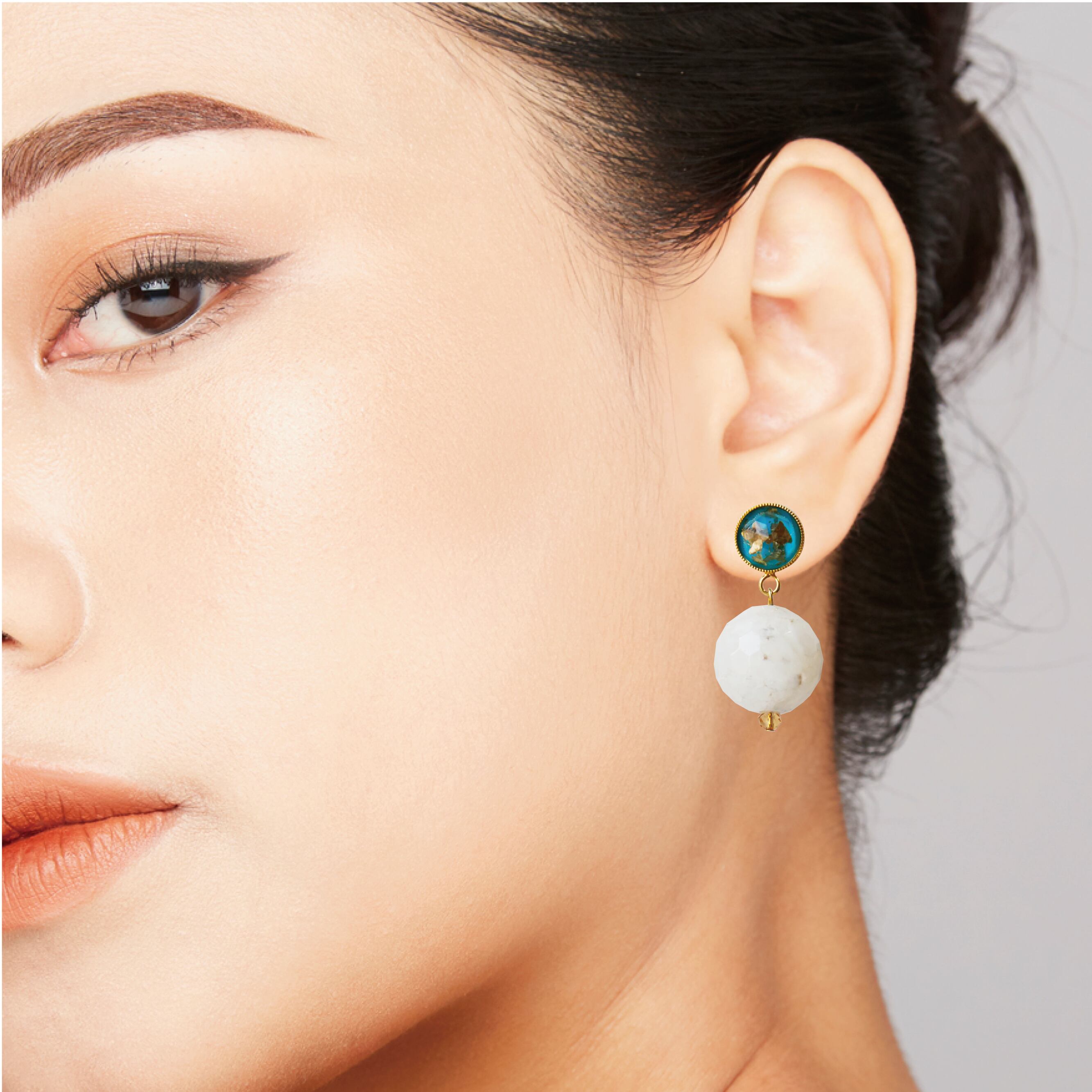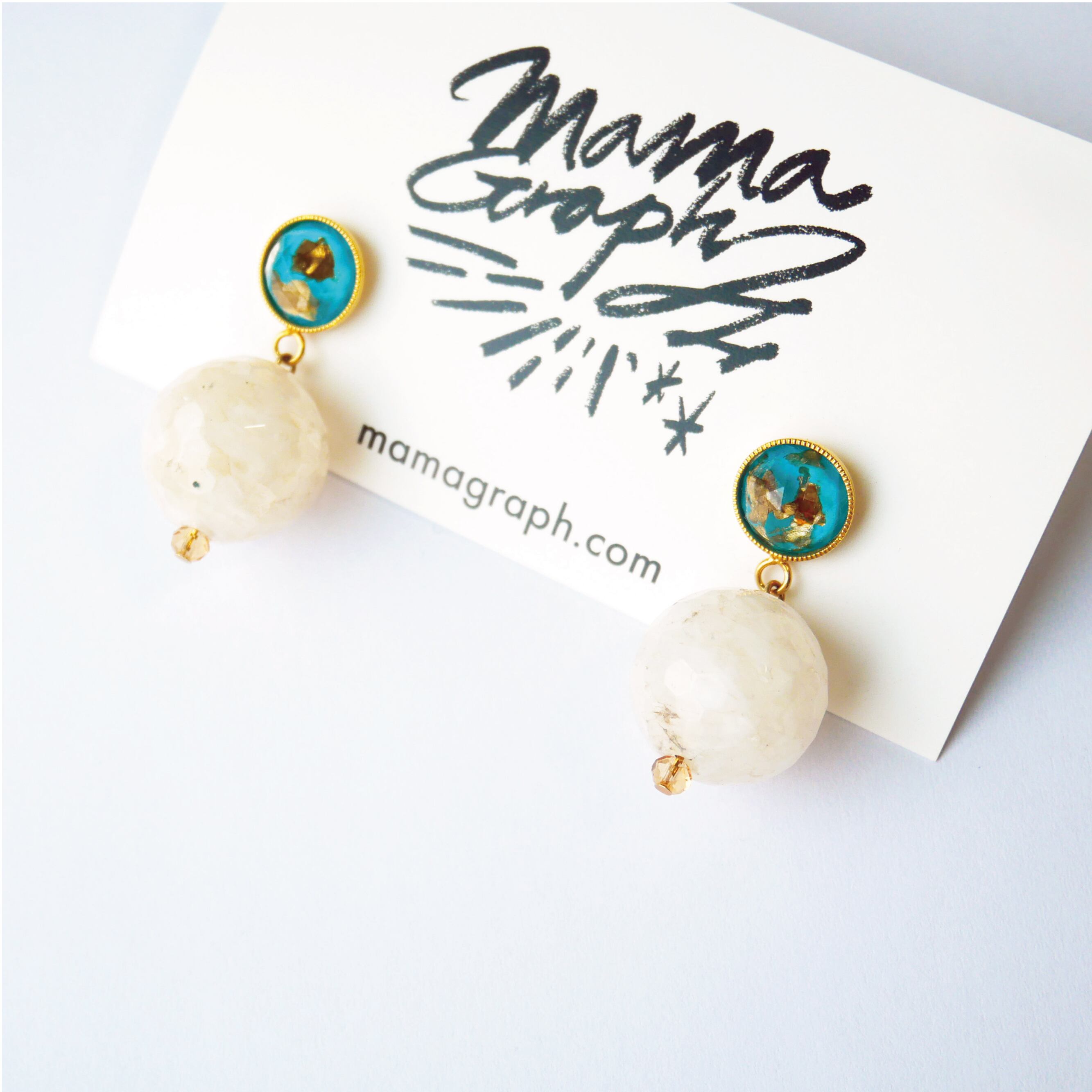 ホワイトアゲートをスカイブルーのパーツとあわせたピアスです。
